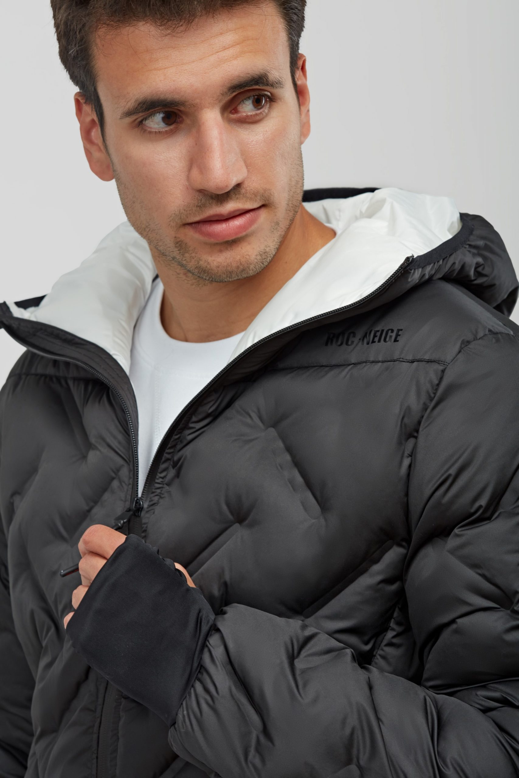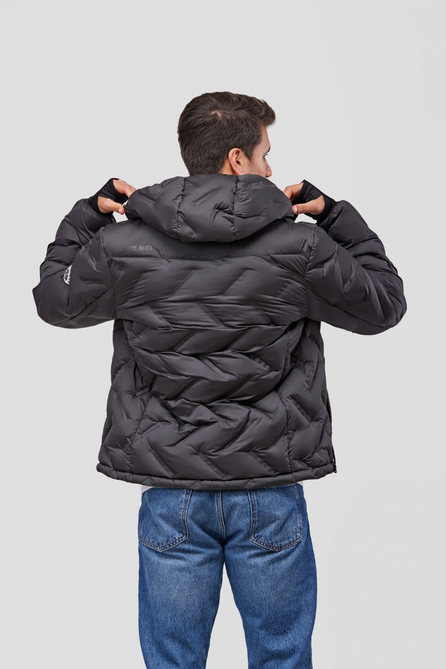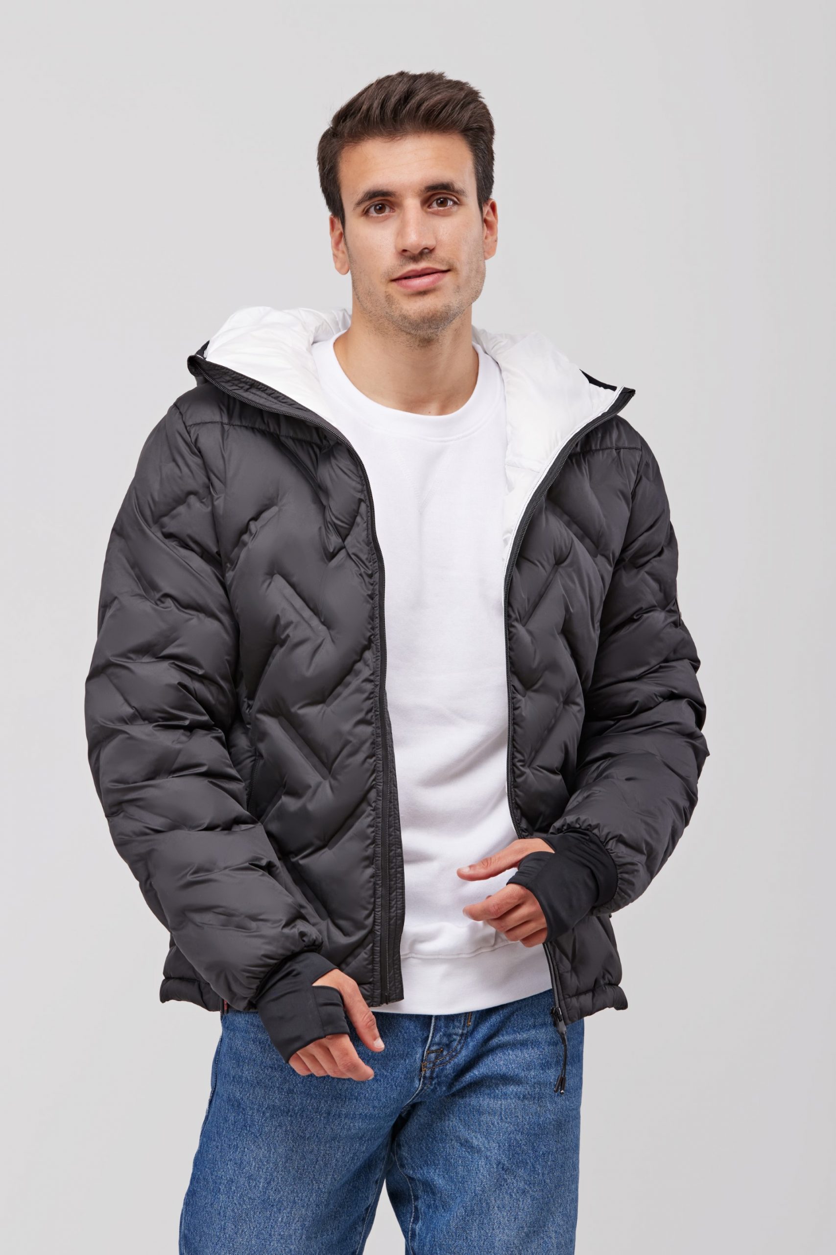 Chaqueta acolchada sellada de capucha y cuello alto con un original patrón de sellado que aporta estilo al confort de su corte.